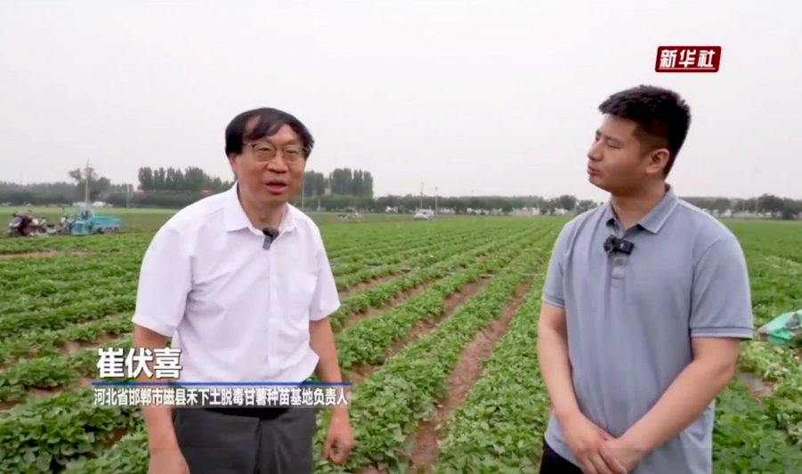 2024年6月5日,新華社直播節(jié)目《神州大地芒種忙》如期播出。節(jié)目中,邯鄲市禾下土種業(yè)有限公司總經(jīng)理崔伏喜陪同新華社河北分社記者張瑋華走進(jìn)禾下土脫毒甘薯種苗基地、種薯基地、組培中心,察看組培苗移植擴(kuò)繁、種苗剪收與栽種等一系列繁忙有序的作業(yè),并現(xiàn)場(chǎng)解讀甘薯脫毒組培關(guān)鍵環(huán)節(jié)、種苗采收流程、種苗栽種技巧,了解禾下土在組培擴(kuò)繁苗創(chuàng)新、組培技術(shù)應(yīng)用、甘薯提質(zhì)增效等方面創(chuàng)新發(fā)展成果,展現(xiàn)了企業(yè)在實(shí)現(xiàn)農(nóng)業(yè)現(xiàn)代化、提升甘薯品質(zhì)方面的蓬勃發(fā)展。