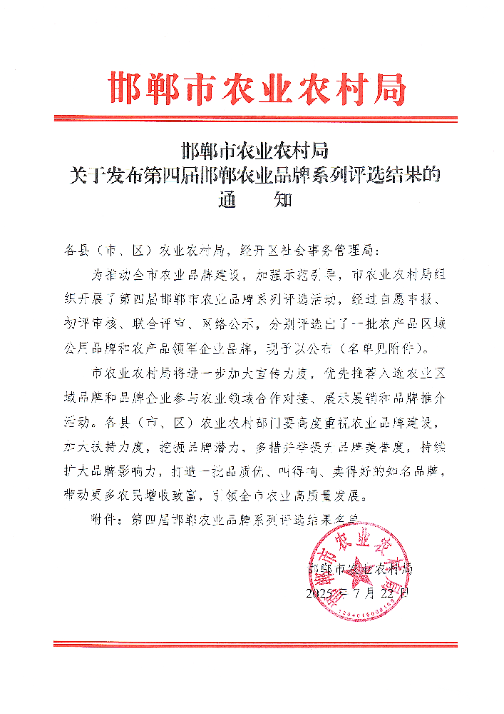 為推動(dòng)全市農(nóng)業(yè)品牌建設(shè),加強(qiáng)示范引導(dǎo),邯鄲市農(nóng)業(yè)農(nóng)村局組織開展了第四屆邯鄲市農(nóng)業(yè)品牌系列評(píng)選活動(dòng),邯鄲市禾下土種業(yè)有限公司成功入選“邯鄲市領(lǐng)軍企業(yè)品牌”。禾下土種業(yè)將持續(xù)發(fā)揮行業(yè)引領(lǐng),帶動(dòng)甘薯產(chǎn)業(yè)標(biāo)準(zhǔn)化、規(guī)?;l(fā)展,為推動(dòng)甘薯產(chǎn)業(yè)高質(zhì)量發(fā)展、助力鄉(xiāng)村振興作出更大貢獻(xiàn)。