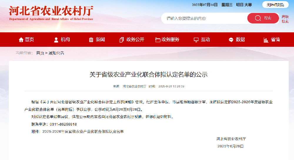 2025年6月26日,河北省農(nóng)業(yè)農(nóng)村廳發(fā)布《關(guān)于省級農(nóng)業(yè)產(chǎn)業(yè)化聯(lián)合體擬認定名單的公示》,禾下土甘薯種業(yè)產(chǎn)業(yè)聯(lián)合體成功通過河北省農(nóng)業(yè)農(nóng)村廳認定。省級農(nóng)業(yè)產(chǎn)業(yè)化聯(lián)合體是國家為推動農(nóng)業(yè)經(jīng)營主體協(xié)同發(fā)展、構(gòu)建現(xiàn)代農(nóng)業(yè)產(chǎn)業(yè)體系,提升農(nóng)業(yè)綜合效益和競爭力,促進鄉(xiāng)村產(chǎn)業(yè)振興而培育的重要組織形式。省級農(nóng)業(yè)產(chǎn)業(yè)化聯(lián)合體整合產(chǎn)業(yè)鏈資源、創(chuàng)新聯(lián)農(nóng)帶農(nóng)模式,是推動農(nóng)業(yè)規(guī)?;瘶藴驶l(fā)展、保障農(nóng)產(chǎn)品穩(wěn)定供給的核心載體,也是加速三產(chǎn)融合、實現(xiàn)農(nóng)業(yè)農(nóng)村現(xiàn)代化的關(guān)鍵支撐力量!此次認定,是對禾下土甘薯種業(yè)產(chǎn)業(yè)聯(lián)合體發(fā)展模式的肯定。禾下土甘薯種業(yè)產(chǎn)業(yè)聯(lián)合體以邯鄲市禾下土種業(yè)有限公司為龍頭,以磁縣為中心,建有福建龍巖、海南三亞等3個甘薯育種基地及安徽、云南、廣東、海南、甘肅等6個規(guī)?;适砹挤N繁育基地。完成18個甘薯新品種...