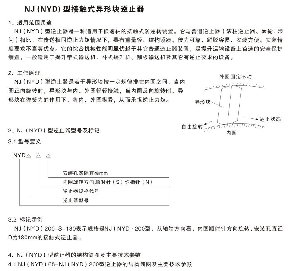 NJ(NYD)型接觸式異形塊逆止器適用范圍用途