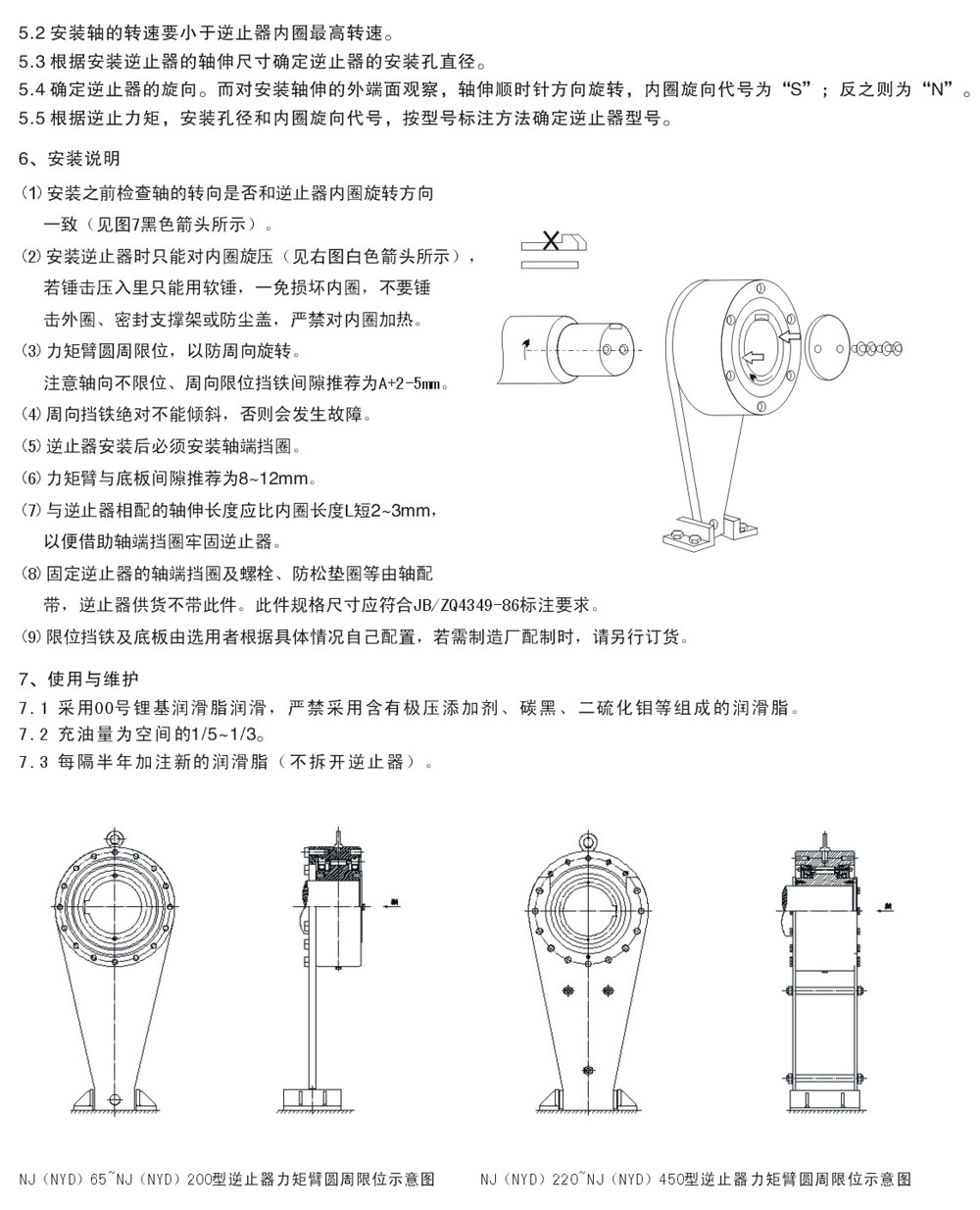 NJ(NYD)型逆止器是一種適用于低速軸的接觸式防逆轉(zhuǎn)裝置。它與普通逆止器(滾柱逆止器、棘輪、帶閘)相比,在傳送相同逆止力矩情況下,具有重量輕、結(jié)構(gòu)緊湊、傳力可靠、解脫容易、安裝方便、安裝精度要求不高等優(yōu)點(diǎn)。它的綜合機(jī)械性能明顯優(yōu)越于其它普通逆止器裝置,是提升運(yùn)輸設(shè)備上首選的安全保護(hù)裝置,一般適用于提升帶式輸送機(jī)、斗式提升機(jī)、刮板輸送機(jī)及其它有逆止要求的設(shè)備。
