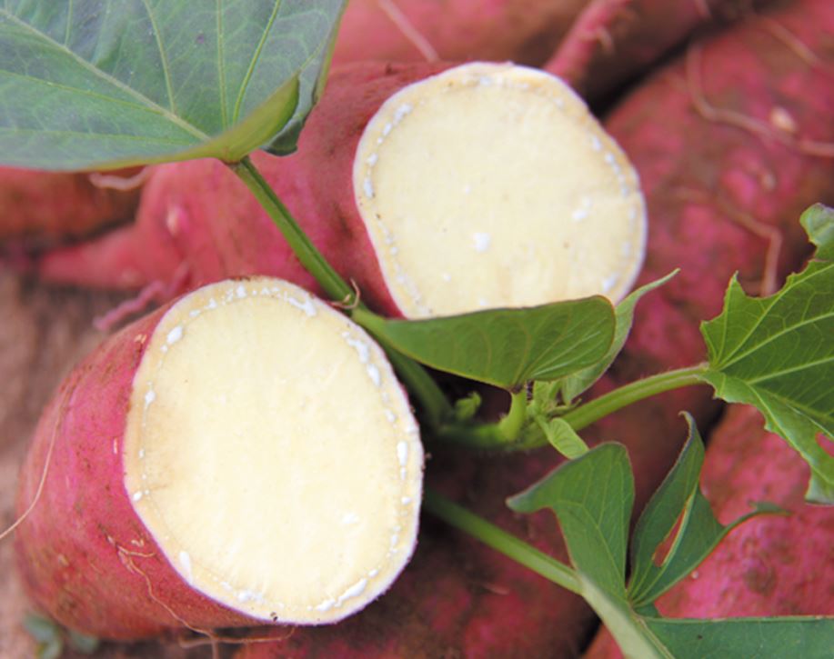 瑪莎莉紅薯品種引種于日本千葉縣、在國(guó)內(nèi)已種植多年,主要產(chǎn)區(qū)以遼寧、河北、河南、海南省為主。由于該品種適應(yīng)性強(qiáng)、國(guó)內(nèi)大部分地區(qū)無(wú)霜期達(dá)到120天以上都可以種植,植株匍匐生長(zhǎng),蔓長(zhǎng)70~150cm,分枝6~8個(gè)、莖稈粗壯、節(jié)間短,葉心臟形,葉柄淺綠色,地上莖綠色,薯塊紡錘形,紫紅皮薯肉黃色,表皮光滑,種薯出芽率高,抗病性好,春薯出粉率可達(dá)25%以上,夏薯可達(dá)19.5%以上,含糖量25~45度(由于土壤、氣候、肥料,水源不同,各地區(qū)會(huì)有差異),單株結(jié)薯4~6塊,最多10~13塊,畝栽3000~3500株,120天可達(dá)4000~4500斤,140天生長(zhǎng)期,畝產(chǎn)5000~6000斤左右,種植技術(shù)好可達(dá)7000斤,是目前國(guó)內(nèi)少有的一個(gè)高產(chǎn)優(yōu)良品種,可用于鮮食蒸、煮、烤、紅薯果脯、紅薯?xiàng)l、紅薯顆粒、紅薯全粉,由于淀粉含量高,粉質(zhì)粘度大,加工粉條無(wú)需任何...